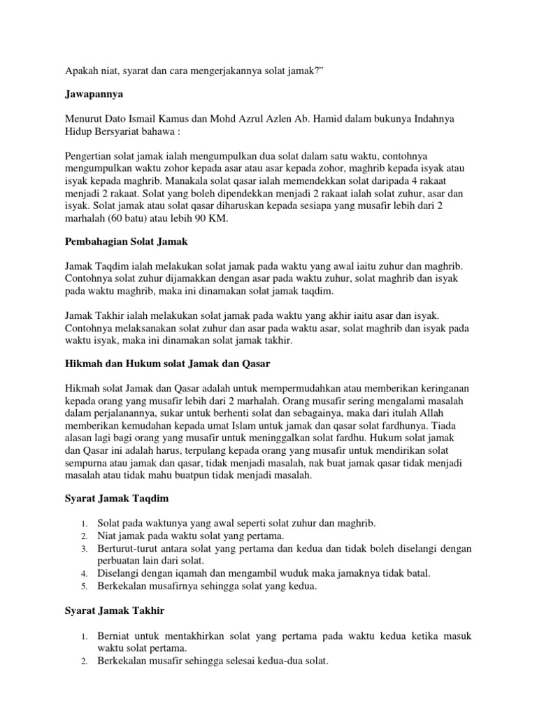 Niat Solat Jamak Qasar Education Kutipan Inspirasi Agama Dan Islam