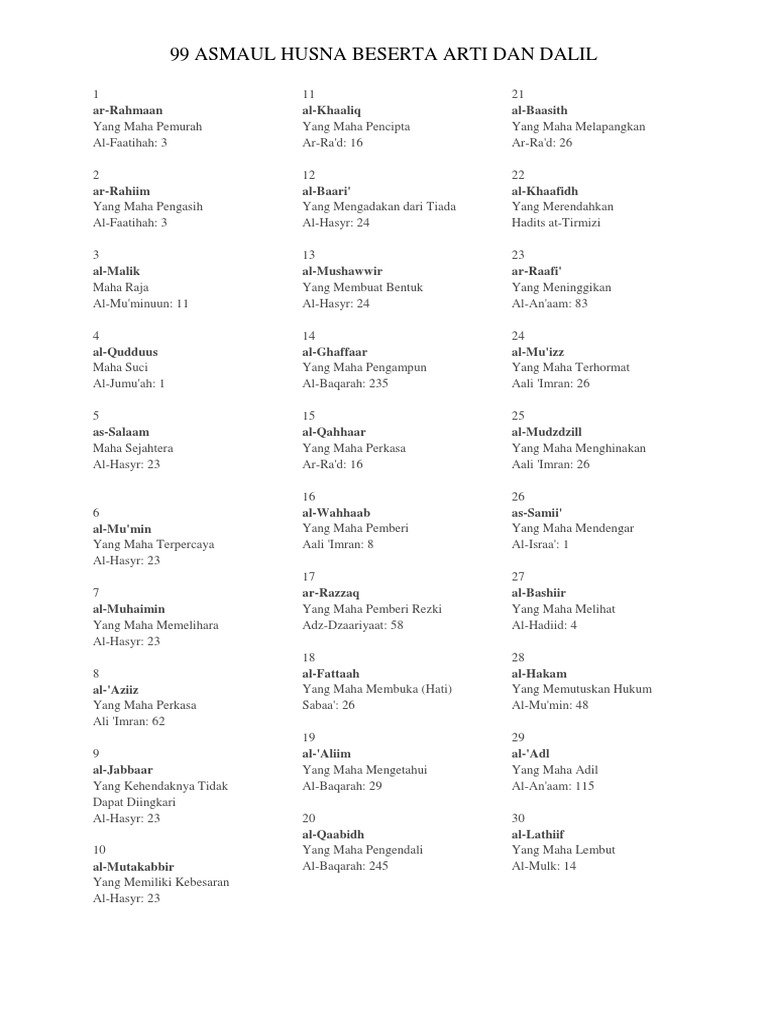 99 Asmaul Husna Beserta Artinya Dan Dalilnya Pdf