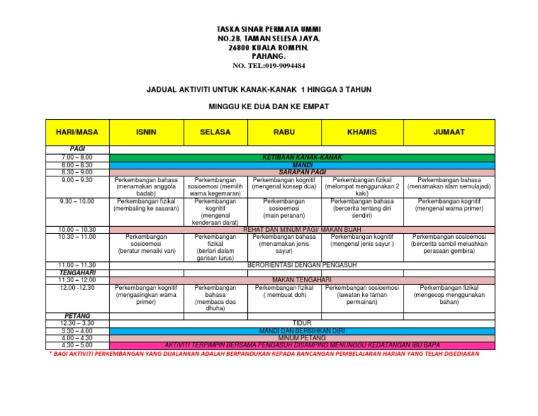 Jadual Aktiviti Untuk Kanak2 1 3 Tahun Wk 2 Dan 4 Tspu