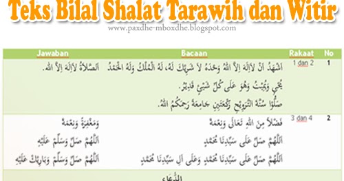 Bacaan Bilal Shalat Tarawih 23 Rakaat Bahasa Indonesia Nelpon A