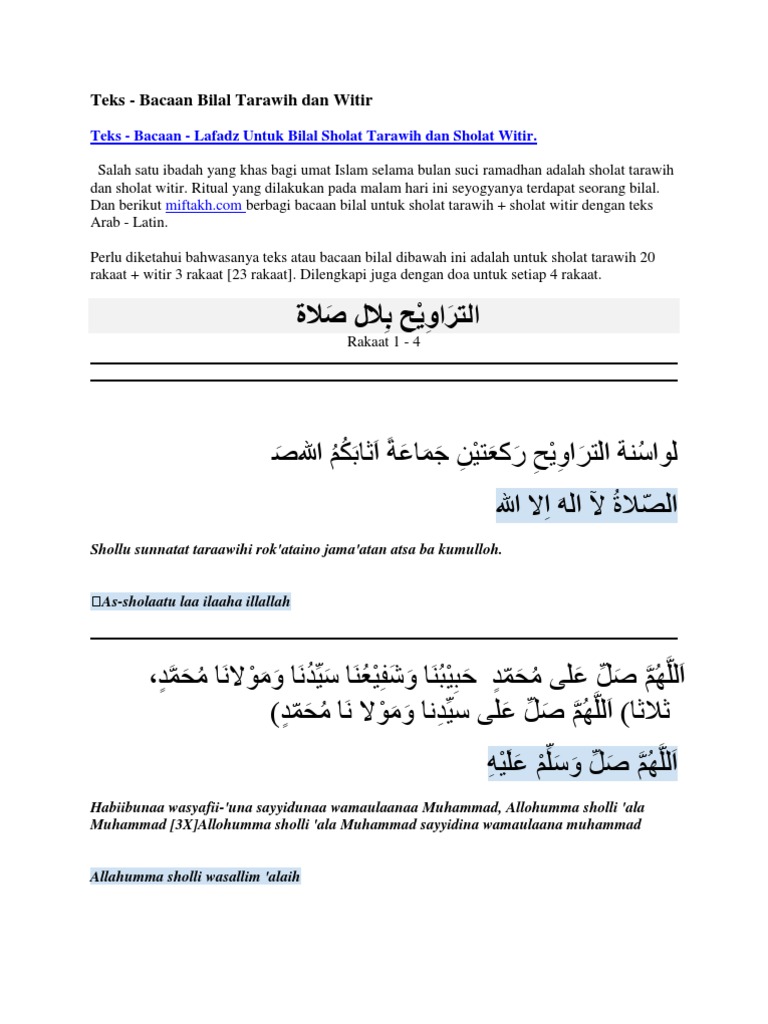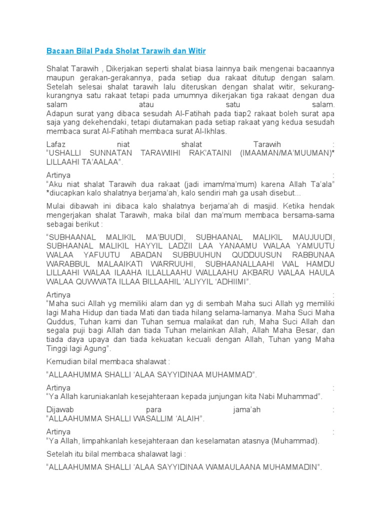Doc Bacaan Bilal Shalat Tarawih Dan Doa Shalat Tarawih Lengkap Bahasa Arab Dan Teguh Prasetyo Academia Edu