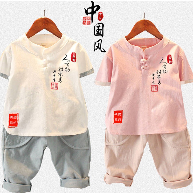 Baju Newborn Ready Stock New Arrival Anak Laki Laki Hanfu Sesuai Dengan Pakaian Anak Anak 2020 Gaya Musim Panas Kanak Kanak Baru Tang Suit Bayi Tengah Dan Kecil Anak Lengan Pendek Katun Dan Linen Dua Potong