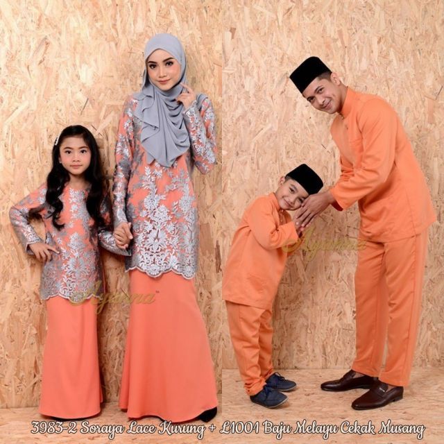 Set Sedondon Suami Isteri Dan Anak Baju Raya Sedondon Suami Isteri Ayah Ibu Anak Seri Anggun Kurung Baju Melayu Noah Shopee Malaysia