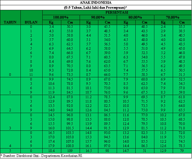 Tabel Berat Badan Dan Tinggi Ideal Anak 0 5 Tahun