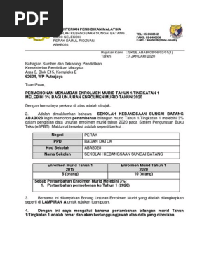 Surat Pertambahan Enrolmen Murid