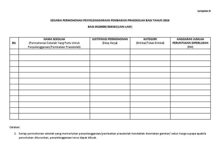 Senarai Permohonan Penyelenggaraan Pembaikan Prasekolah Bagi Tahun 2018