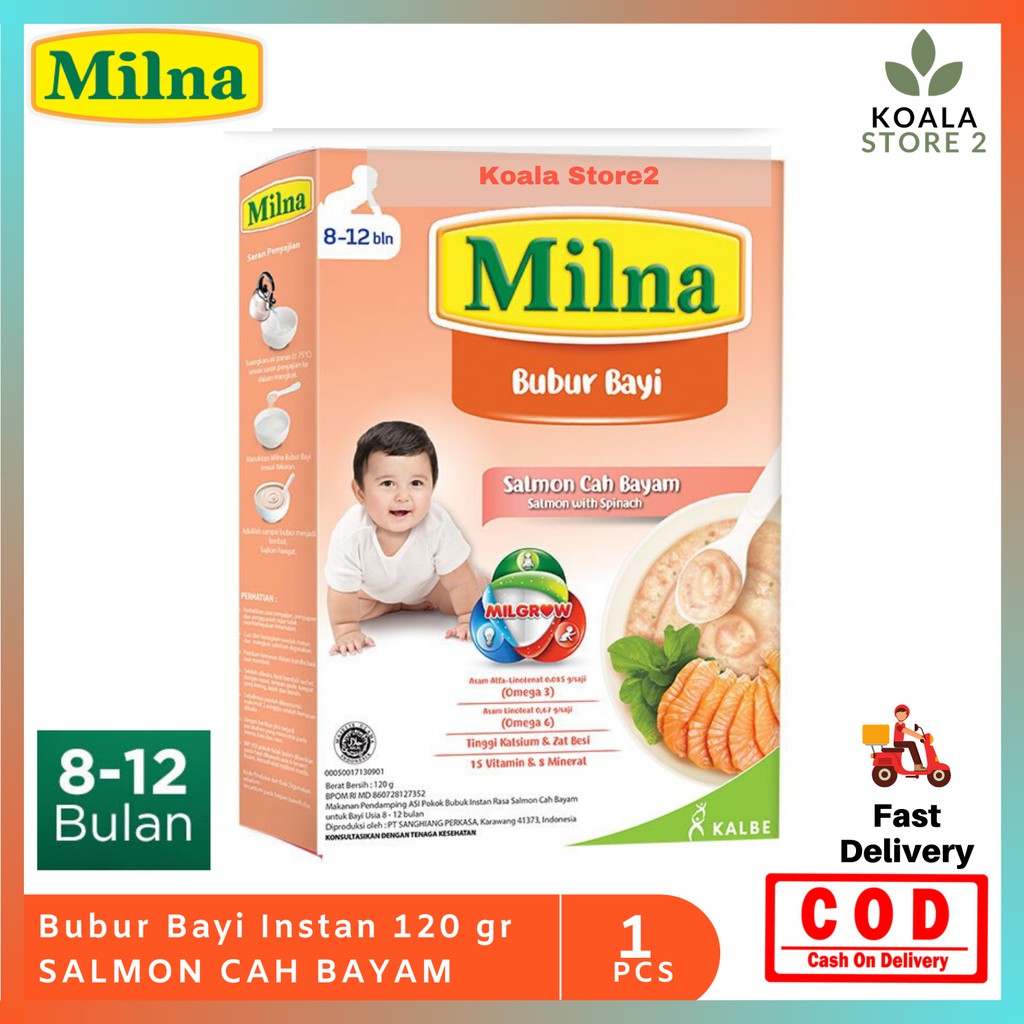 Milna Bubur Bayi Reguler 8 Bulan Salmon Cah Bayam 120 Gr Bubur Bayi Instant Shopee Indonesia
