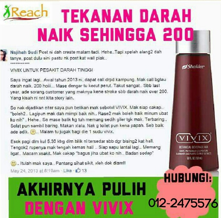 Vivix Penawar Rawatan Sakit Darah Tinggi Pengedar Shaklee Stokis Shaklee Vivix Shaklee